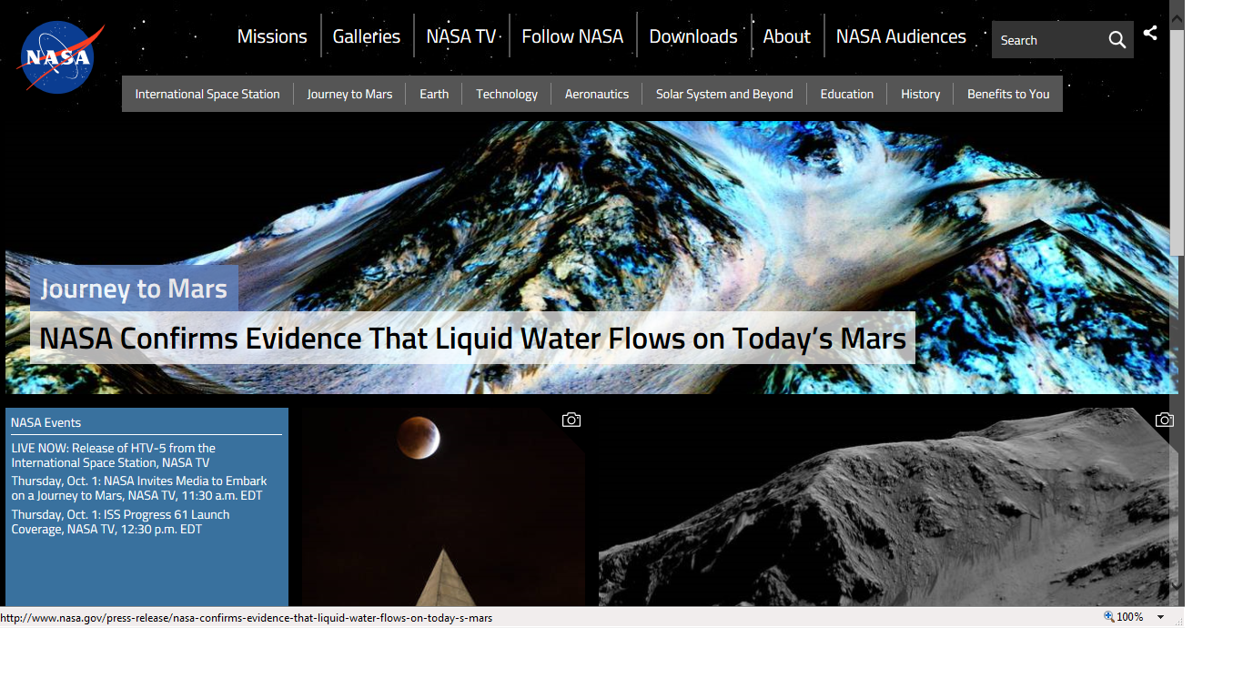 En este contexto, NASA hace público, hoy, 29 de septiembre de 2015, la evidencia que el agua líquida fluye en Marte